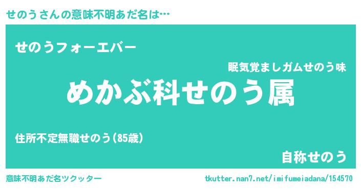 | ヒーロー風カッコイイあだ名 | 『ウルトラせのうマン』『仮面セノダー』 |