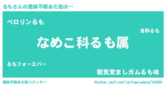 | 料理風あだ名 | 『るもごはん』『栗とるものマフィン』 |