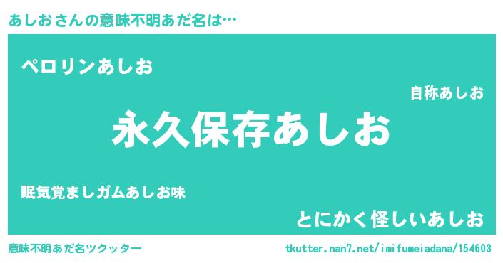 | 男性向けラノベタイトル風あだ名 | 『あしおという概念が存在しない退屈な世界 』 |