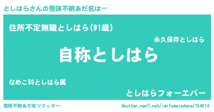 | 欧米人風あだ名 | 『としはら・ステッグマイヤー』 |