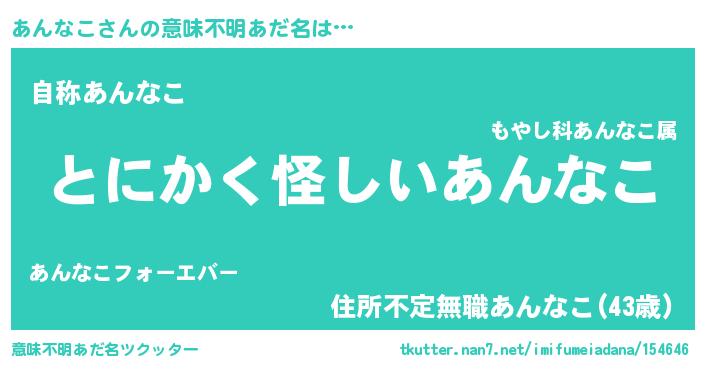 | ヒーロー風カッコイイあだ名 | 『天弓騎士アン』『超時空戦士アンナコ』 |