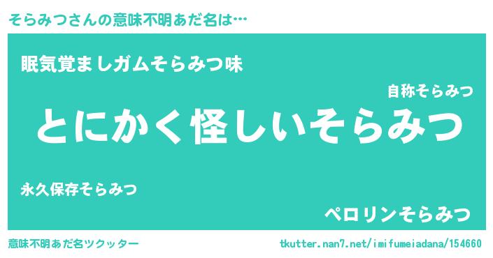 | 胡散臭い通販商品みたいなあだ名 | 『全米が絶賛したサプリメント…その名も「そらみつ」』 |