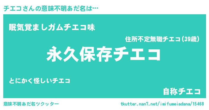| 胡散臭い通販商品みたいなあだ名 | 『前代未聞の健康食品…その名も「チエコ」』 |