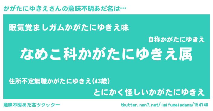 | 胡散臭い通販商品みたいなあだ名 | 『お金では代えられないイリジウム磁石…その名も「かがたにゆきえ」』 |