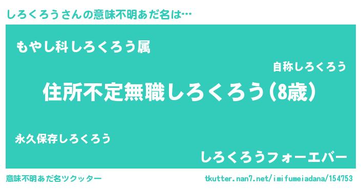 | 男性向けラノベタイトル風あだ名 | 『この素晴らしい世界にしろくろうを!』 |