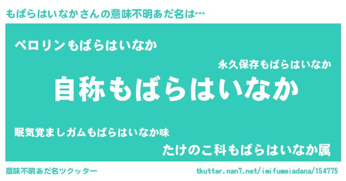 | ヘコむあだ名 | 『もばもー』『もばらはいなか(遠い目)』 |