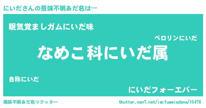| ヘコむあだ名 | 『豆乳』『にいっふぃ~』『にいっぺ』 |