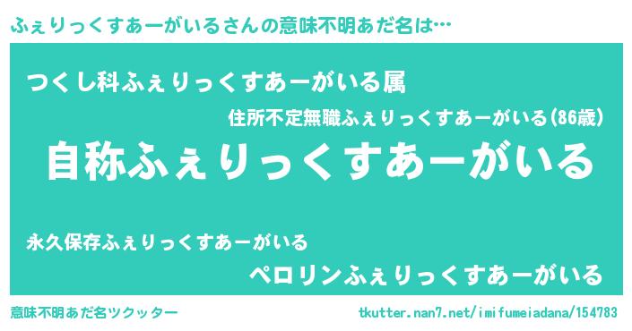 | 胡散臭い通販商品みたいなあだ名 | 『テレビで話題のアガリクス…その名も「ふぇりっくすあーがいる」』 |