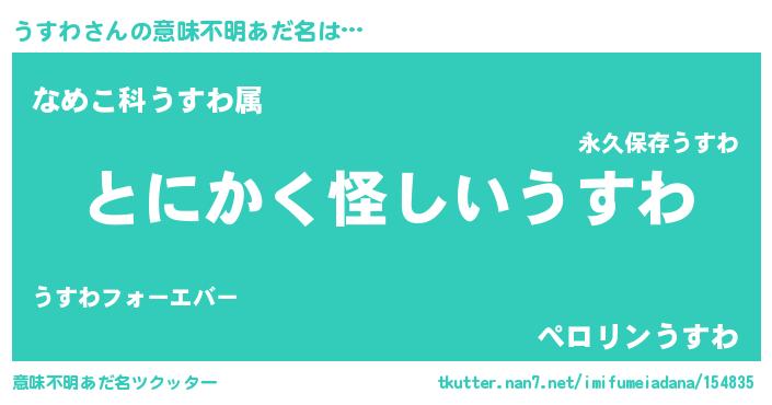| 女子向けラノベタイトル風あだ名 | 『うすわは平凡を望む』 |