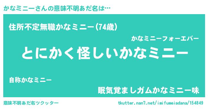 | 男性向けラノベタイトル風あだ名 | 『かなミニーの嫁は女の子じゃないと思った?』 |