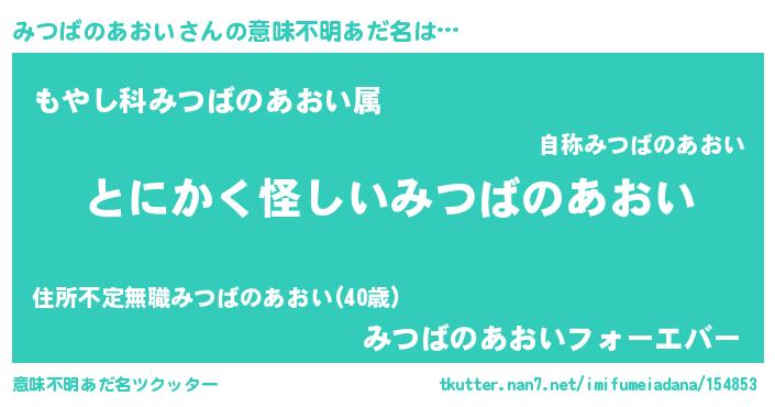 | 欧米人風あだ名 | 『ウサインみつばのあおい』 |