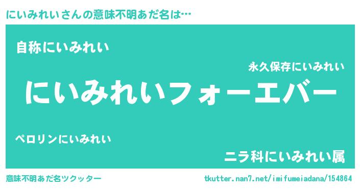 | ファンタジー風あだ名 | 『エターナルニイミレイー』『ゼニイトゥ』 |