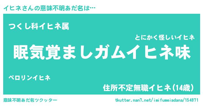 | ヘコむあだ名 | 『イヒぷりん』『イヒっふぃ~』 |