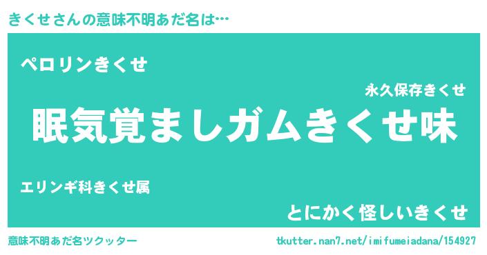 | 男性向けラノベタイトル風あだ名 | 『きくせに滅ぼされるだけの簡単なお仕事です』 |