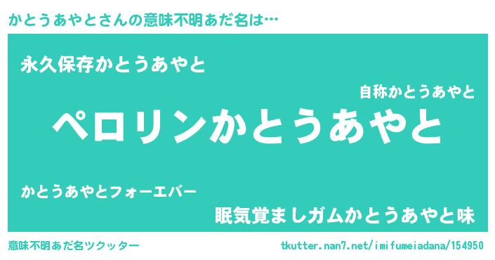 | 可愛いあだ名 | 『かんかん』『かとうあやとママ』 |