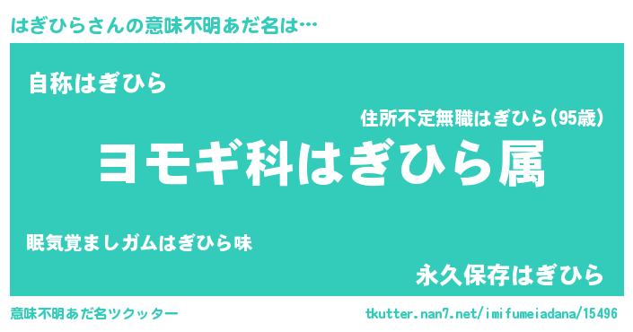| 胡散臭い通販商品みたいなあだ名 | 『芸能人もオススメする高麗人参…その名も「はぎひら」』 |