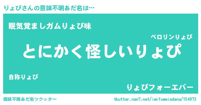 | 女子向けラノベタイトル風あだ名 | 『りょぴは平凡を望む』『りょぴ恋絵巻』 |