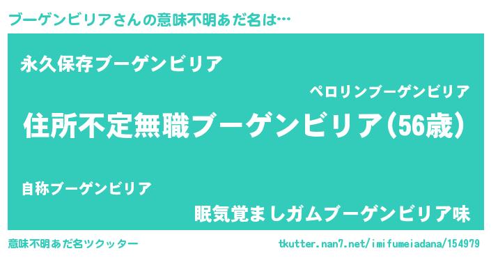 | 女子向けラノベタイトル風あだ名 | 『悪役ブーゲンビリアに転生したようですが、知った事ではありません』 |