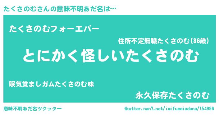| 男性向けラノベタイトル風あだ名 | 『うちのたくさのむが世界を掌握している!』 |