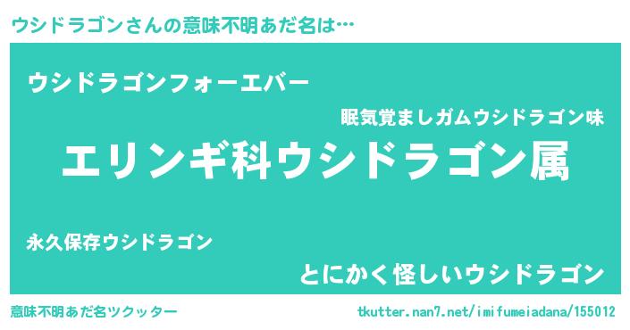| 欧米人風あだ名 | 『トリンドルウシドラゴン』 |