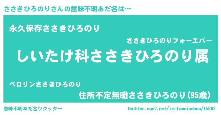 | 胡散臭い通販商品みたいなあだ名 | 『絶対に幸福をもたらす健康食品…その名も「ささきひろのり」』 |