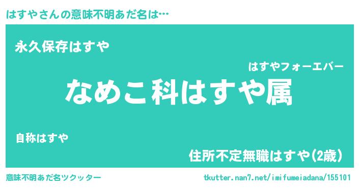 | ヘコむあだ名 | 『はすや(遠い目)』『酢こんぶ』 |