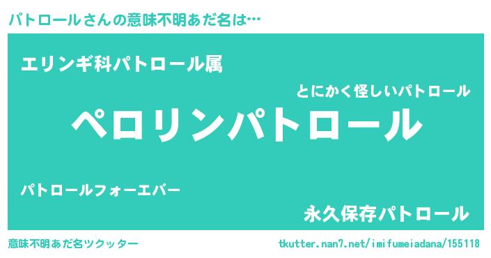 | ヒーロー風カッコイイあだ名 | 『スーパーパトロール』『ネオパトロール』 |