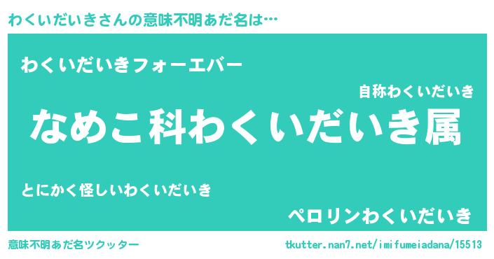 | 男性向けラノベタイトル風あだ名 | 『転生したらわくいだいきだった件』 |