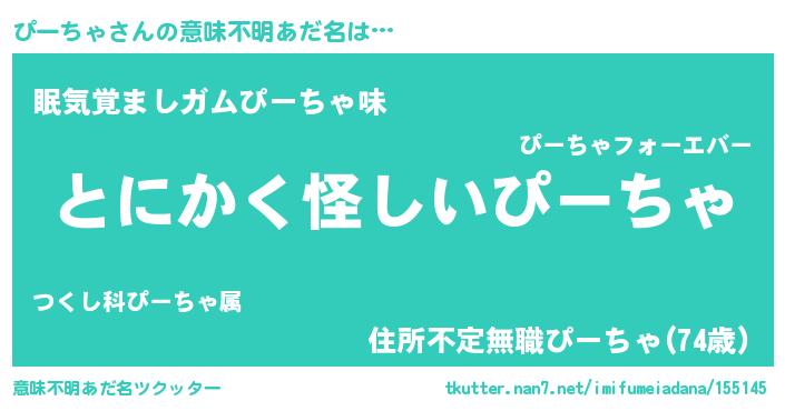 | 女子向けラノベタイトル風あだ名 | 『ぴーちゃ様がみてる』 |