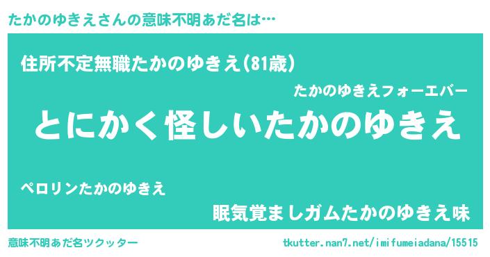 | 男性向けラノベタイトル風あだ名 | 『ダンジョンにたかのゆきえを求めるのは間違っているだろうか』 |