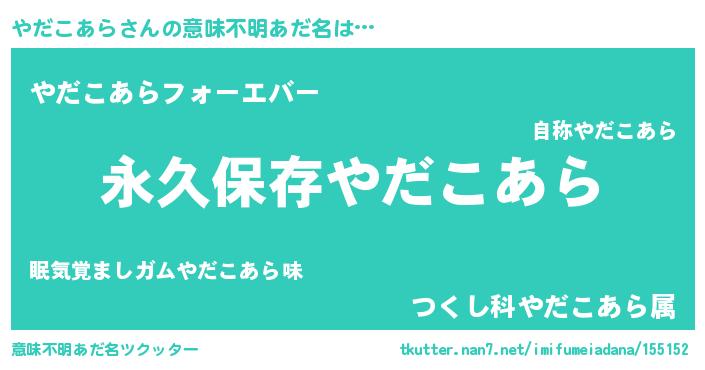 | ヘコむあだ名 | 『やだこあら(小並感)』『豆乳』 |