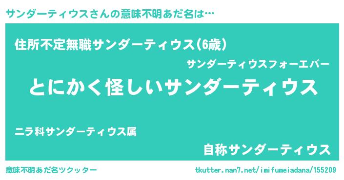 | 胡散臭い通販商品みたいなあだ名 | 『信頼と実績のサプリメント…その名も「サンダーティウス」』 |
