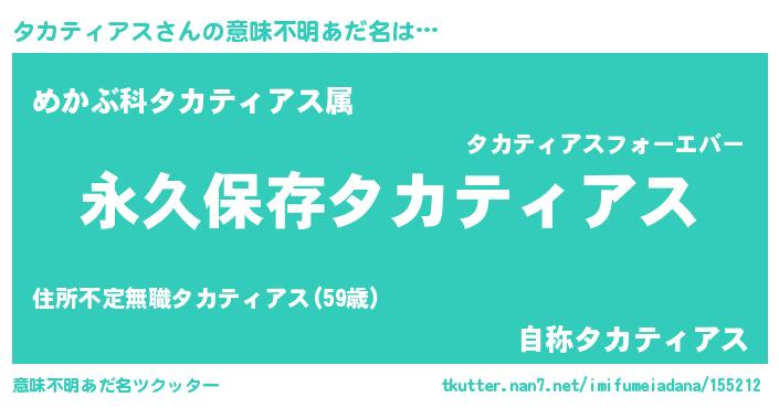 | 女子向けラノベタイトル風あだ名 | 『異世界で失敗しない100のタカティアス』 |