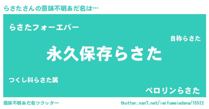 | ヒーロー風カッコイイあだ名 | 『ネオラサタ』『ウルトラらさたマン』 |