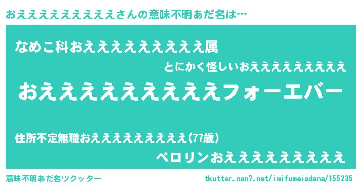 | 2回繰り返すあだ名 | 『おおええ』『わーわー』『おえおえ』 |