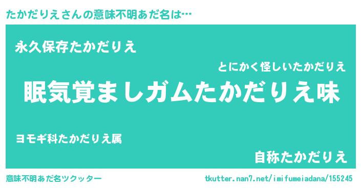 | ヘコむあだ名 | 『たかだりえ(笑)』『たかを』 |