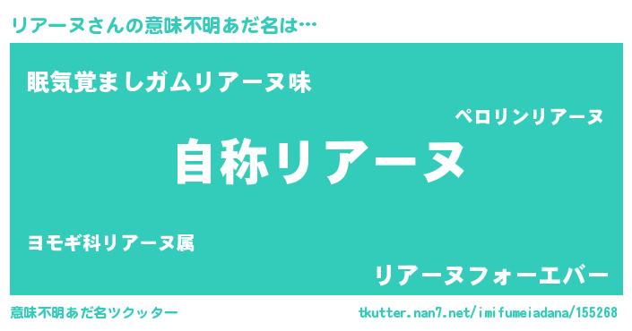 | ヘコむあだ名 | 『レバニラ』『リアもー』『リアを』 |