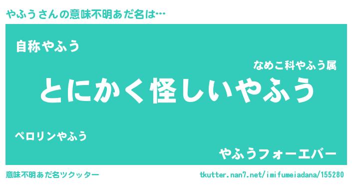 | 女子向けラノベタイトル風あだ名 | 『やふう様がみてる』『やふう伯爵の花嫁』 |