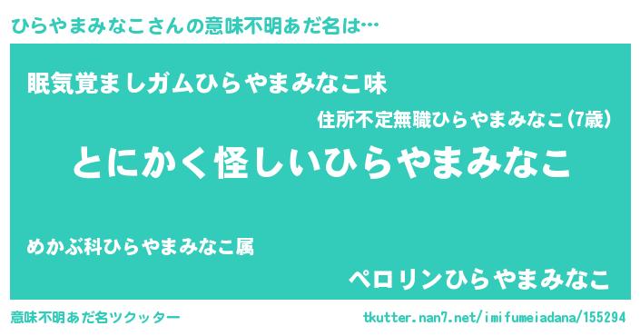女子向けラノベタイトル風あだ名 | 『ひらやまみなこは平凡を望む』 |