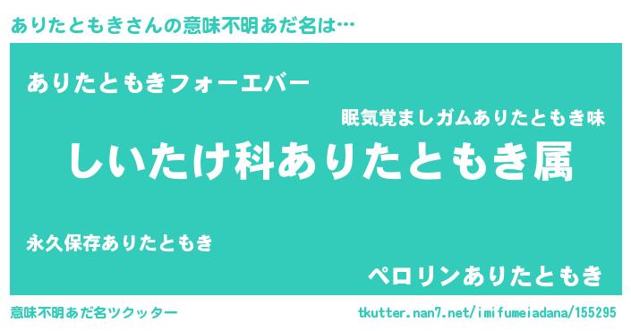 | 男性向けラノベタイトル風あだ名 | 『アリタトモキスレイヤー』 |