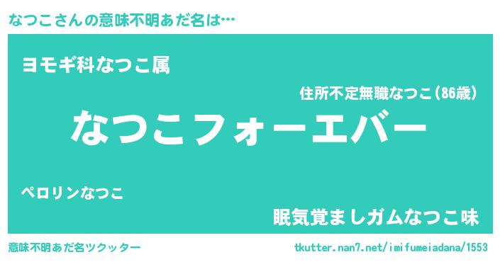 | ポケモン風あだ名 | 『ナツゴンZ』『ナツコダネ』 |