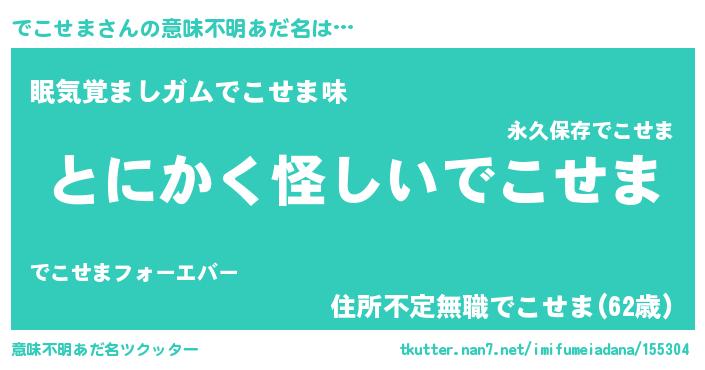 | 女子向けラノベタイトル風あだ名 | 『でこせまは平凡を望む』 |
