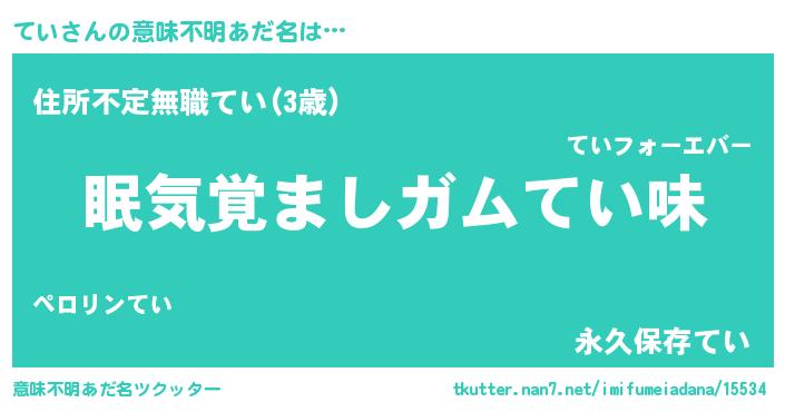 | ヘコむあだ名 | 『てい(苦笑)』『酢こんぶ』 |