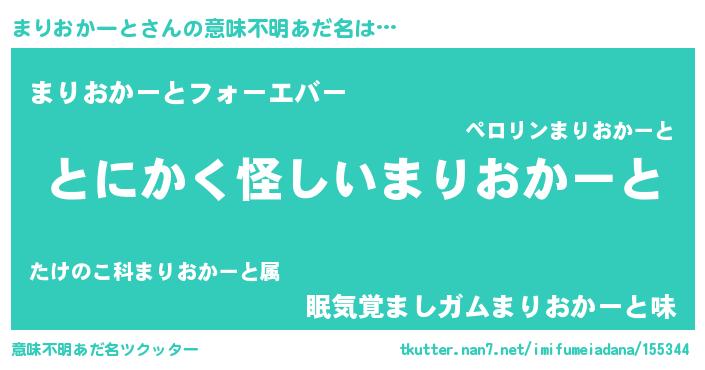 | 女子向けラノベタイトル風あだ名 | 『まりおかーとは平凡を望む』 |