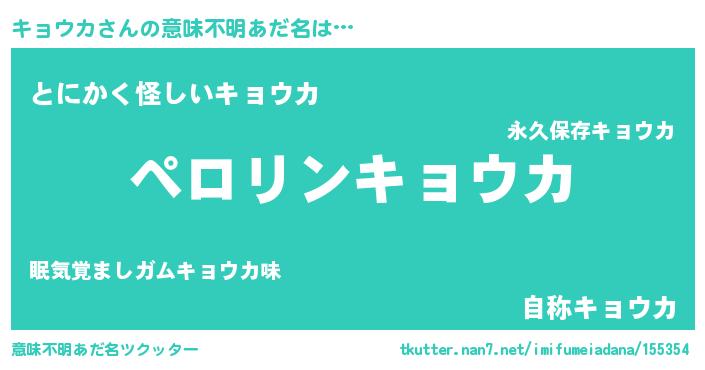 ヒーロー風カッコイイあだ名 | 『スーパーキョウカ』『黄金騎士キョ』 |