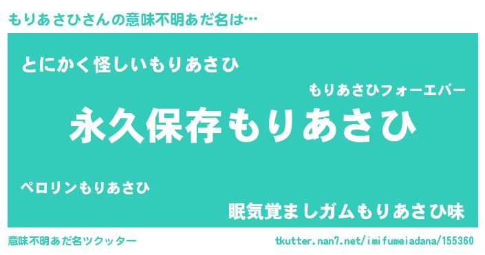 | ヒーロー風カッコイイあだ名 | 『ネオモリアサヒ』『暗黒騎士モリ』 |