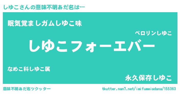| ヒーロー風カッコイイあだ名 | 『ウルトラしゆこマン』『ネオシユコ』 |