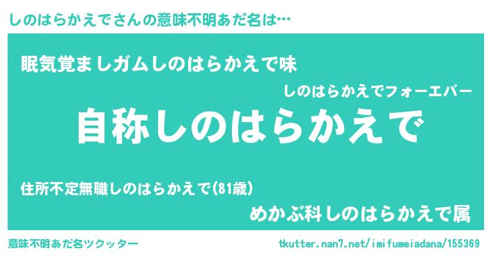 | 胡散臭い通販商品みたいなあだ名 | 『ガンによく効く高麗人参…その名も「しのはらかえで」』 |