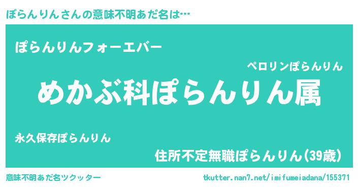 | 男性向けラノベタイトル風あだ名 | 『ポランリンスレイヤー』 |