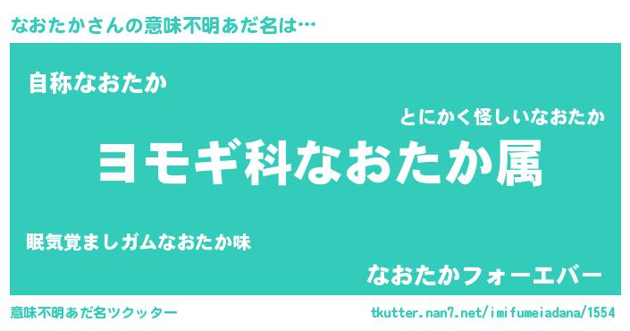 | 男性向けラノベタイトル風あだ名 | 『なおたか~年齢イコール彼女いない歴の魔法使い~』 |